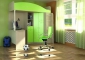 Материалы: Корпус ЛДСтП (цвет «Дуб»), кромка ПВХ. Фасады - фрезерованное МДФ в пленке ПВХ (Цвет «Зеленый» или «Голубой»), кромка ПВХ. Размер спального места кровати, мм: 800х1900