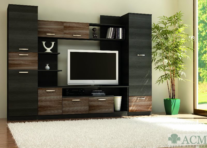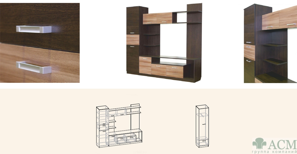 Тумба под ТВ с пеналом ТВЖ Размеры, мм: 2380х460х2130 Размер ниши под ТВ, мм: 1380х960
