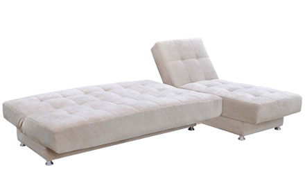 Современная стильная модель. Сиденье и спинка сформированы на основе металлокаркаса с деревянными латами, на котором закреплен мягкий мат, внутри которого располагается пружинный блок с настилом из термовойлока и листового пенополиуретана и соединены между собой трехпозиционным узлом трансформации. В коробчатом основании дивана и оттоманки расположены емкости для хранения спальных принадлежностей. При дополнительном заказе может комплектоваться декоративными подушками. Для трансформации требуется расстояния между стеной и диваном. Есть промежуточное положение спинки «релакс». Механизм трансформации: «клик-кляк». Габариты (ШхГхВ), мм: 2680×1550×960. Спальное место, мм: 2680×1320.