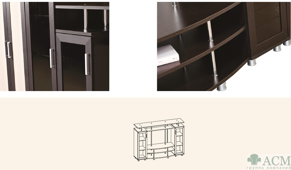 Тумба под ТВ ТВГ Размеры, мм: 2000х550х1450 Размер ниши под ТВ, мм: 1200х700