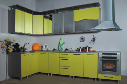 Кухня «Скарлет 1». Модульные кухонные гарнитуры, выпускаемые нашей фабрикой, имеют достаточно широкую гамму типоразмеров, которая позволяет создать оптимальный вариант по необходимым размерам и функциональности. Также в наших кухнях предусмотрена возможность использования встраиваемой техники, что удовлетворяет современным требованиям, предъявляемым к кухонной мебели. Материалы: Корпус - ЛДСП. Цвет - титан. Фасад - ЛДСП. Цвет - манго, лайм. Кромка ПВХ. Цвет - серый. Фасад со стеклом в профиле МДФ. Цвет - алюминий. Подсветка. Габариты: Стол-встройка (СВС): 600х600х850 мм. Стол, 2 двери: 800х600х850 мм. Стол (СЗЯС) 1 дверь, 3 ящика: 800х600х850 мм. Стол приставной (СПС): 400х600х850 мм. Стол-мойка (СМС): 800х600х850 мм. Стол-мойка угловой (правый/левый) (СМУС): 1000х600х850 мм. Шкаф-сушка (ШСС): 800х300х834 мм. Шкаф-витрина (ШВ2С) 2 двери: 800х300х834 мм. Шкаф-витрина горизонтальный (ШВГС): 800х300х834 мм. Шкаф-витрина (ШВС): 400х300х834 мм. Шкаф угловой (ШУС): 600х600х834 мм.