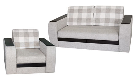 Габариты малого дивана (ШхГхВ), мм: 1820×960×890. Спальное место, мм: 1850×1230. Габариты кресла-кровати (ШхГхВ), мм: 1070×960×890. Спальное место, мм: 470×1840.
